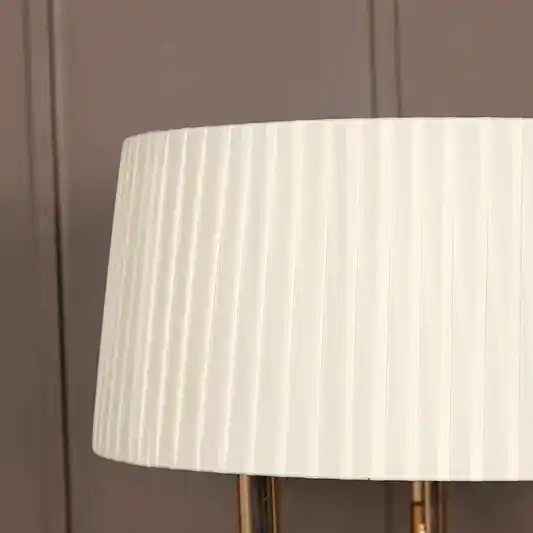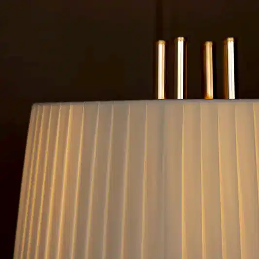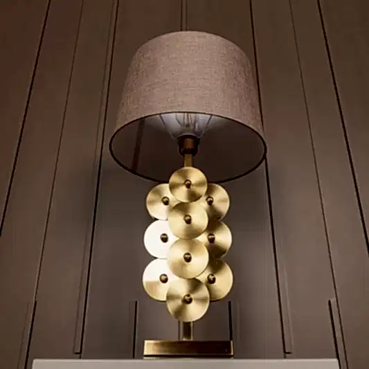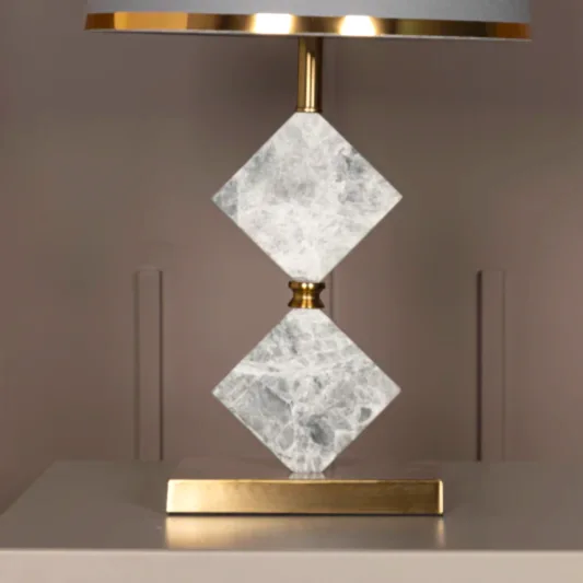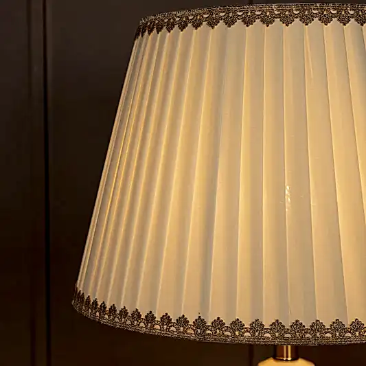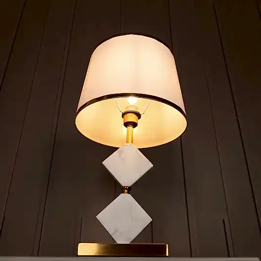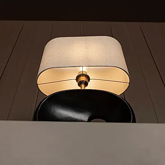 Kumaş başlıklı abajurlar, yumuşak ışık yayılımı sağlayarak dinlendirici bir atmosfer sunar.