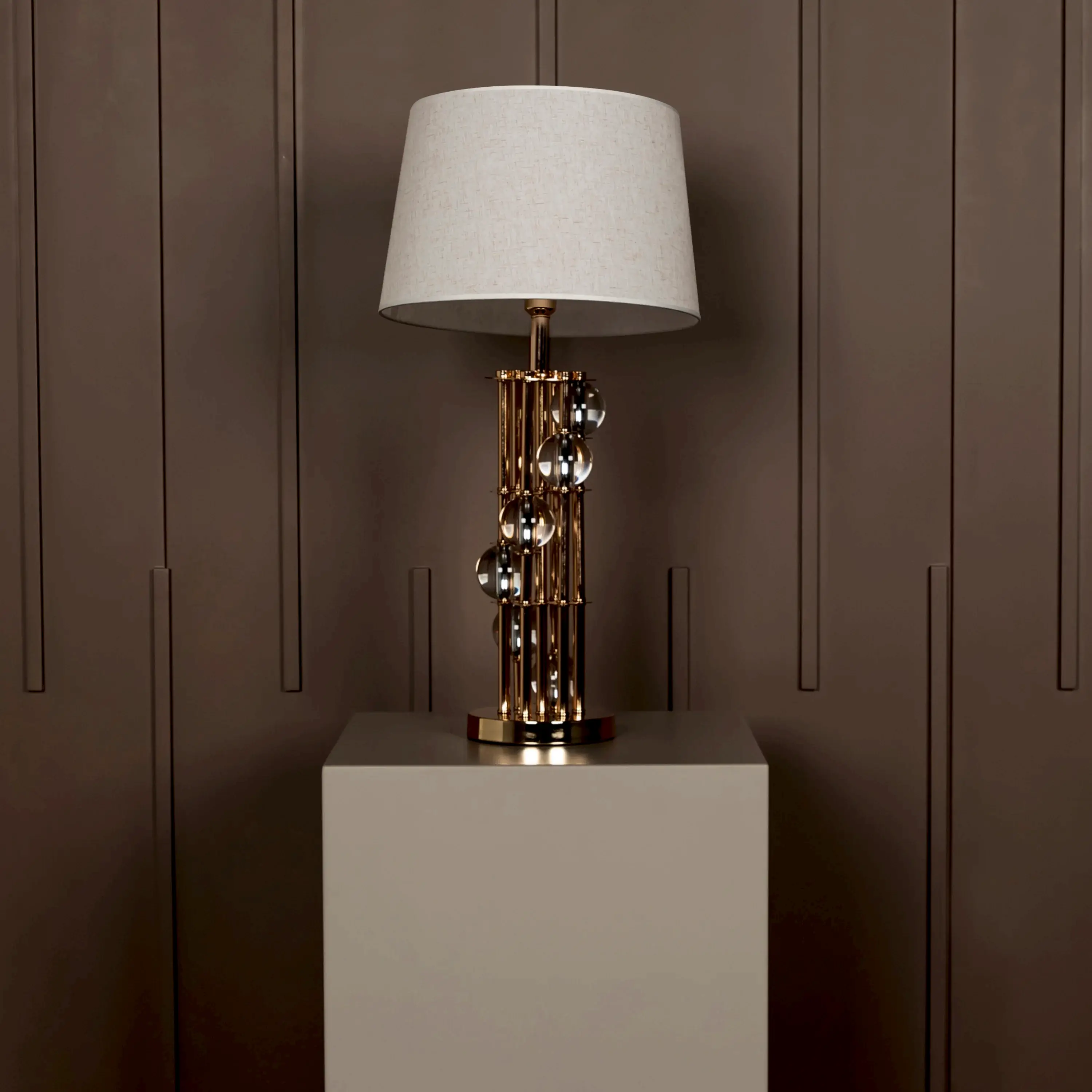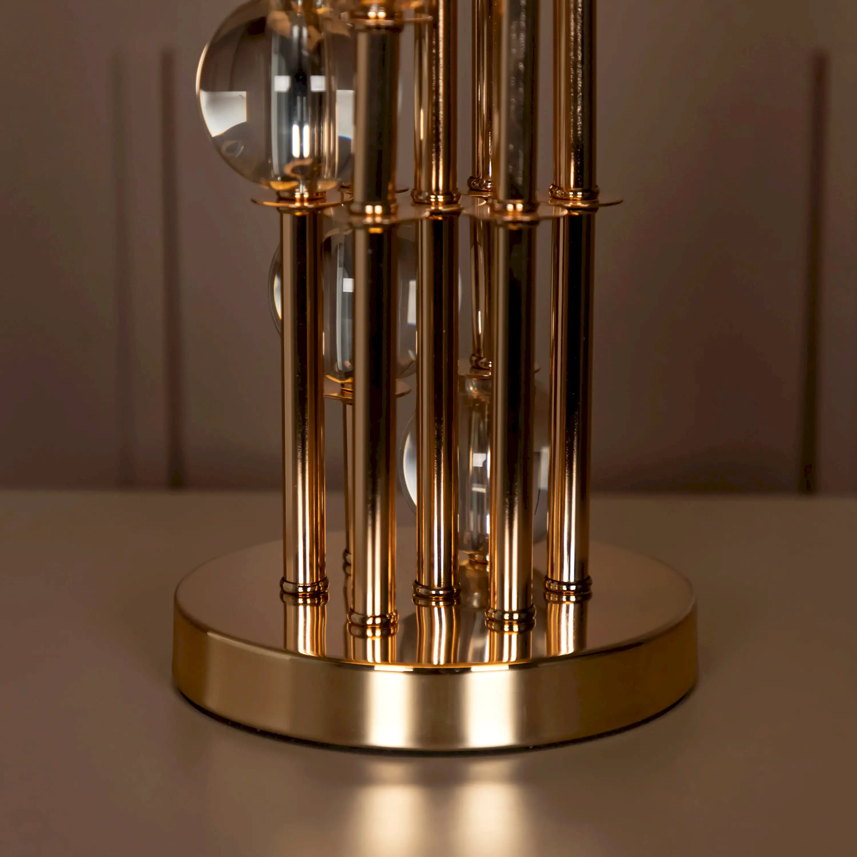 Bonn Abajur, gold metal gövdesiyle lüks bir vurgu sunarken, şeffaf cam yapısıyla mekâna hafiflik ve ferahlık getirir. Modern çizgisiyle zamansız bir zarafet sunan bu tasarım, yaşam alanlarının dikkat çekici tamamlayıcısıdır.