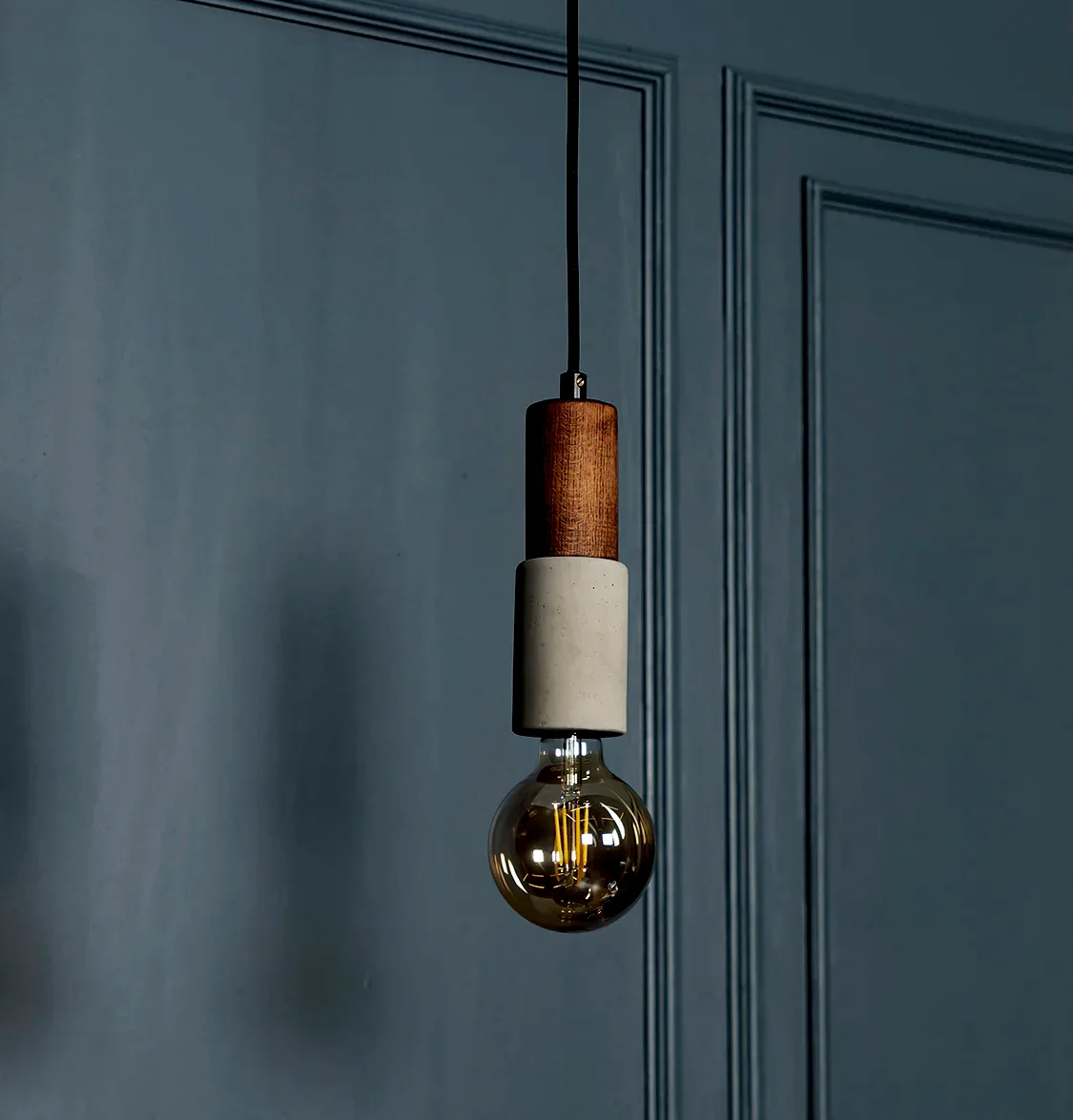 Tochi Sarkıt, gri beton ve wenge ahşap kombinasyonunu büyük formda sunar. E27 duy uyumlu başlığı, geniş ve yumuşak ışık yayılımı sağlar.
