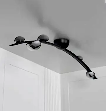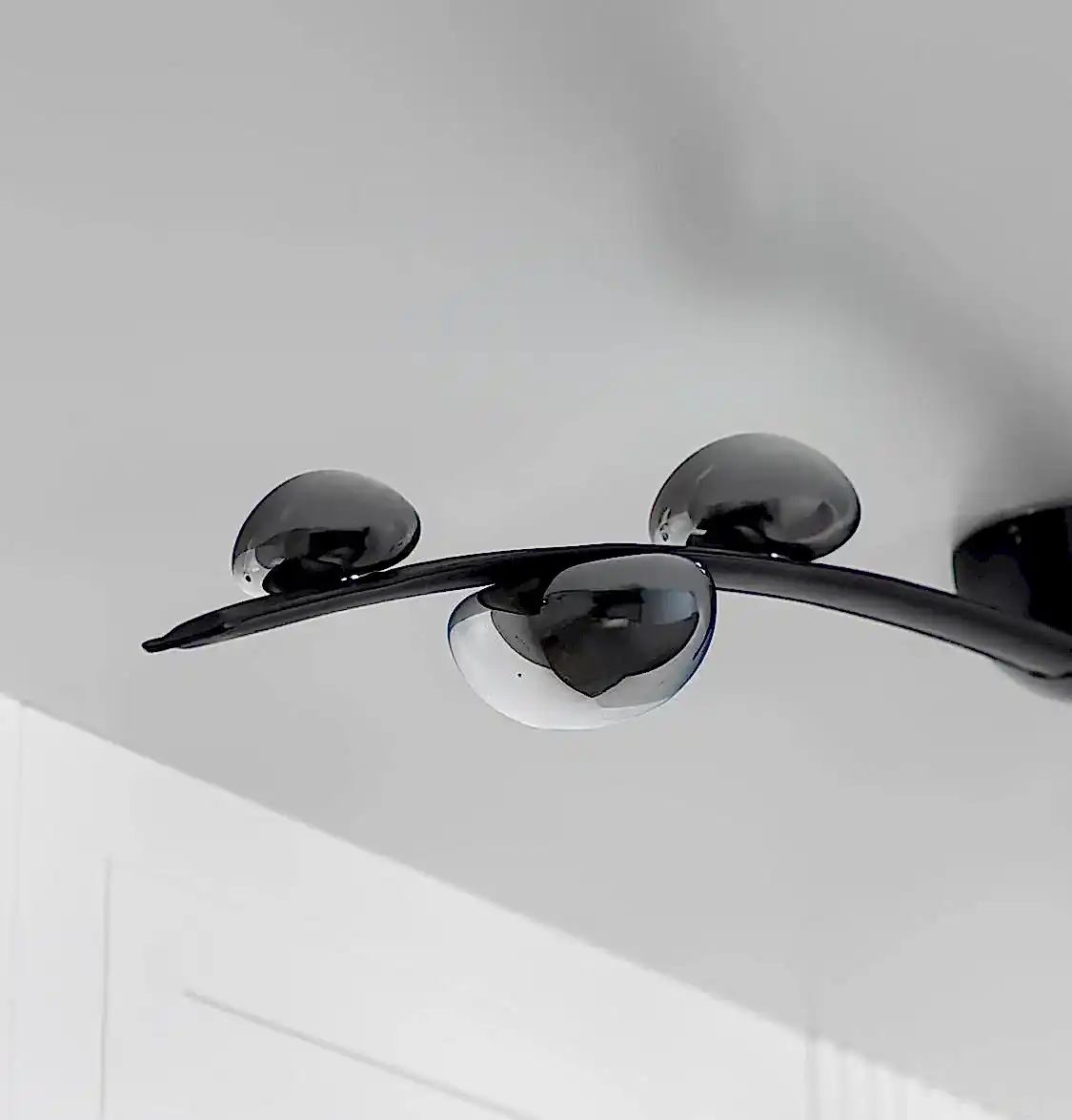 Kinşasa Plafonyer, siyah deri gövdesiyle modern tasarımın lüks detaylarını füme camla buluşturur. Beş kollu yapısı ve geniş formu, tavanda güçlü bir varlık oluştururken, deri dokusu avizeye sofistike bir şıklık kazandırır.