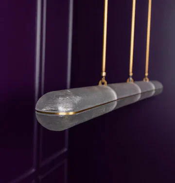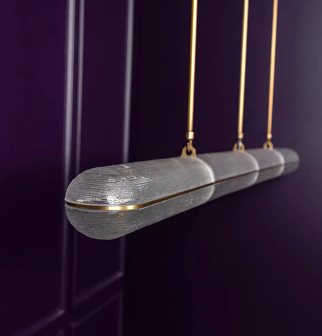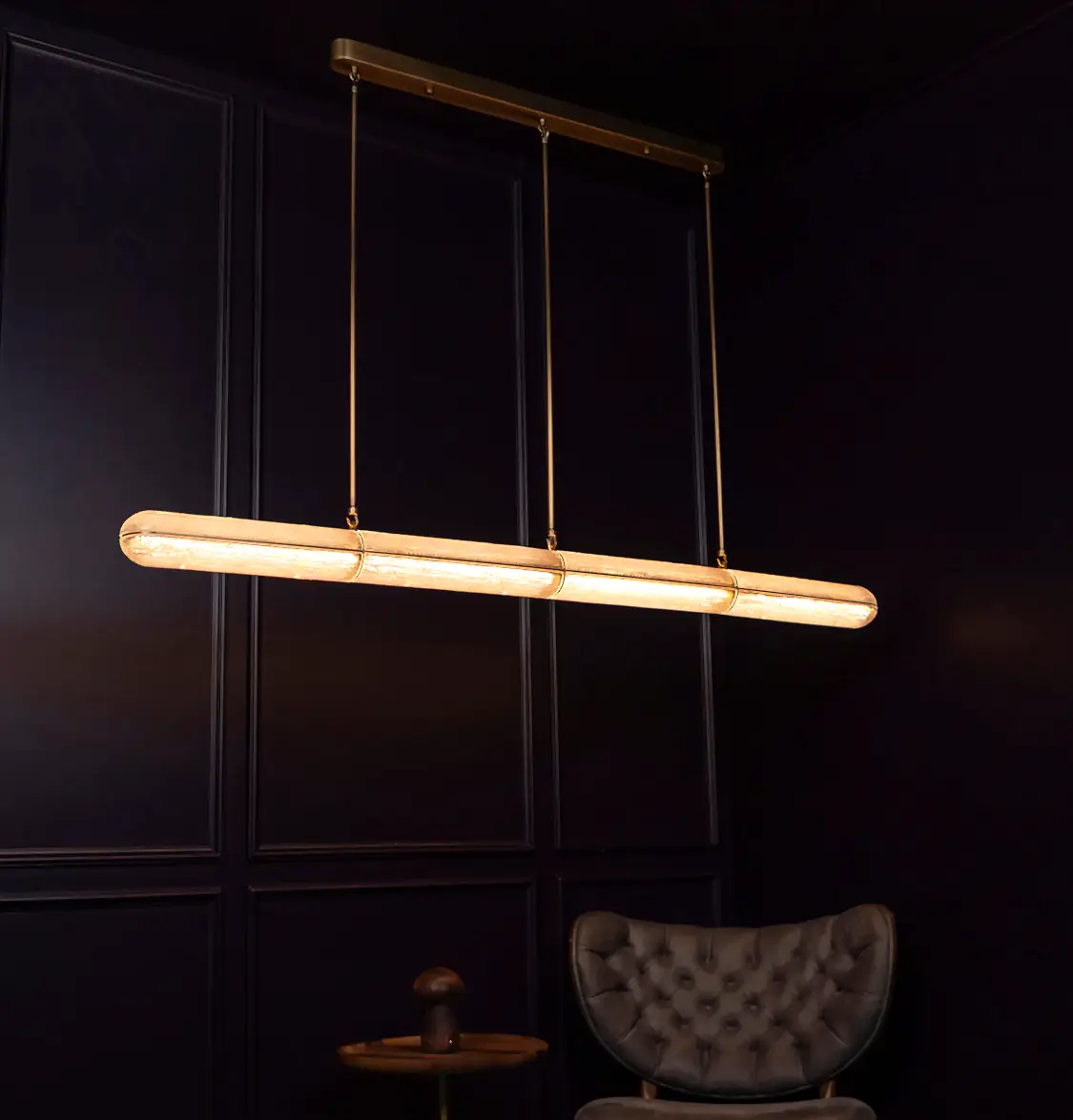 Zambiya Sarkıt Avize, beyaz buzlu cam panelleriyle mekânlara ferahlık kazandırırken, eskitme metal gövdeyle endüstriyel ve modern tasarımı bir araya getirir. 163 cm’lik uzun yapısıyla geniş alanlarda dikkat çekici bir tasarım öğesi olur.