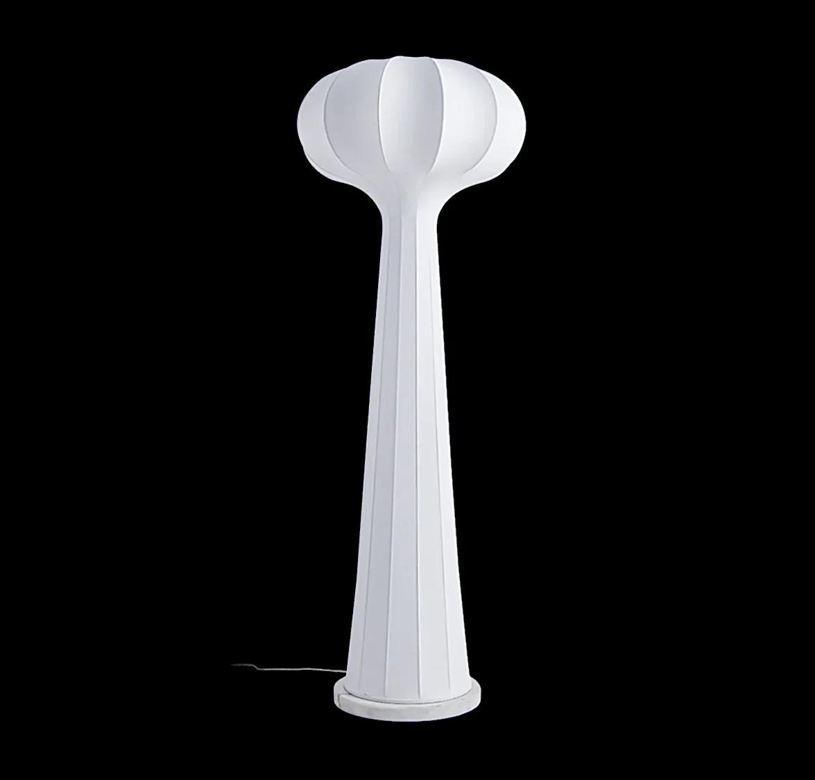 Mimosa Soft Touch Lambader, mat krom detayları ve mantar formundaki geniş kubbesiyle çağdaş dekorasyonlara yumuşak ve dikkat çekici bir ifade katar. Beyaz yüzeyinin dinginliği, mekâna zarif ve ferah bir hava kazandırır.