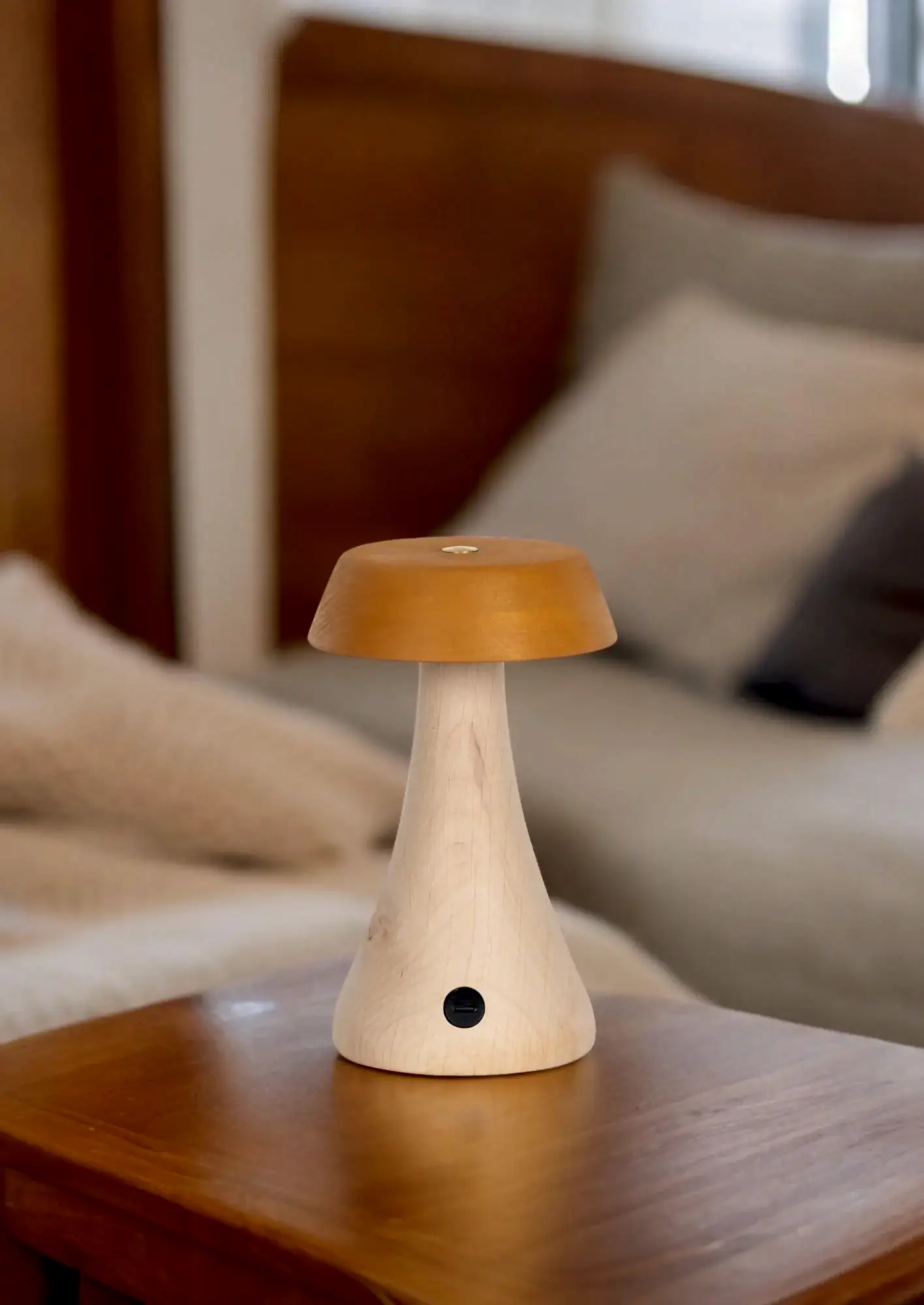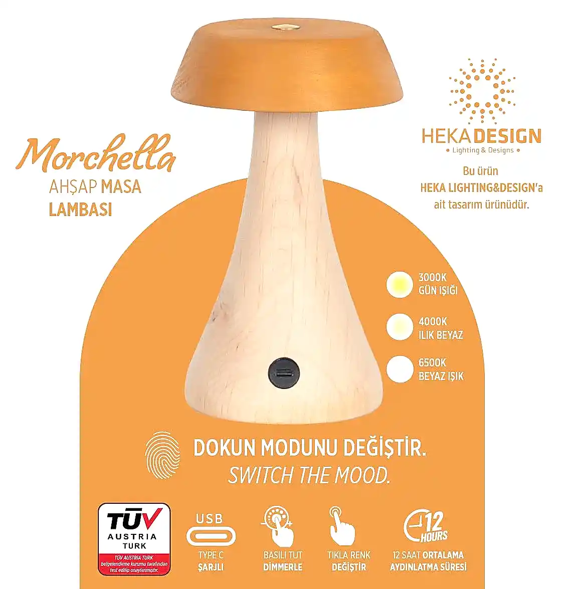 Morchella Şarjlı Sarı Masa Lambası, doğal ahşap gövdesi ve sakin sarı başlığıyla sıcak, yalın ve modern bir görünüm sunar. Yumuşak LED ışığıyla bulunduğu ortama loş ve huzurlu bir atmosfer katar.