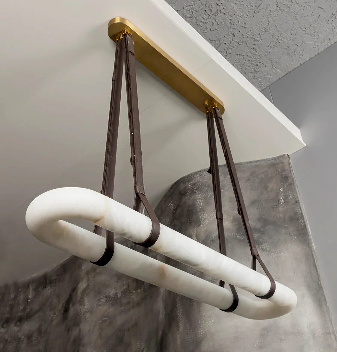 Teta Sarkıt Avize, çizgisel tasarımı ve doğal mermerin zarafetiyle modern yaşam alanlarına yeni bir soluk getiriyor. Eskitme metal yüzeyiyle sofistike bir görünüm sunarken, beyaz mermerin doğal dokusu avizeye eşsiz bir karakter katar. Uzun ve ince formu, geniş yüzeylerde dengeli bir aydınlatma sağlar ve dekorasyona estetik bir derinlik kazandırır.
