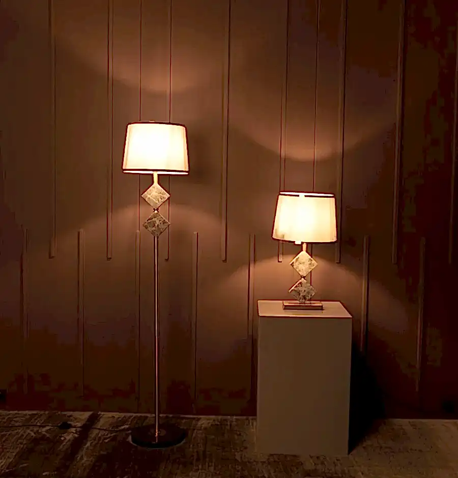 E27 ampulden süzülen ışık, gri mermerin damarlarını vurgularken mekâna cool ve rafine bir ambiyans katar. Ponzan, yalnızca bir lambader değil, aynı zamanda modern sanat eseri gibi bir dekorasyon öğesidir.