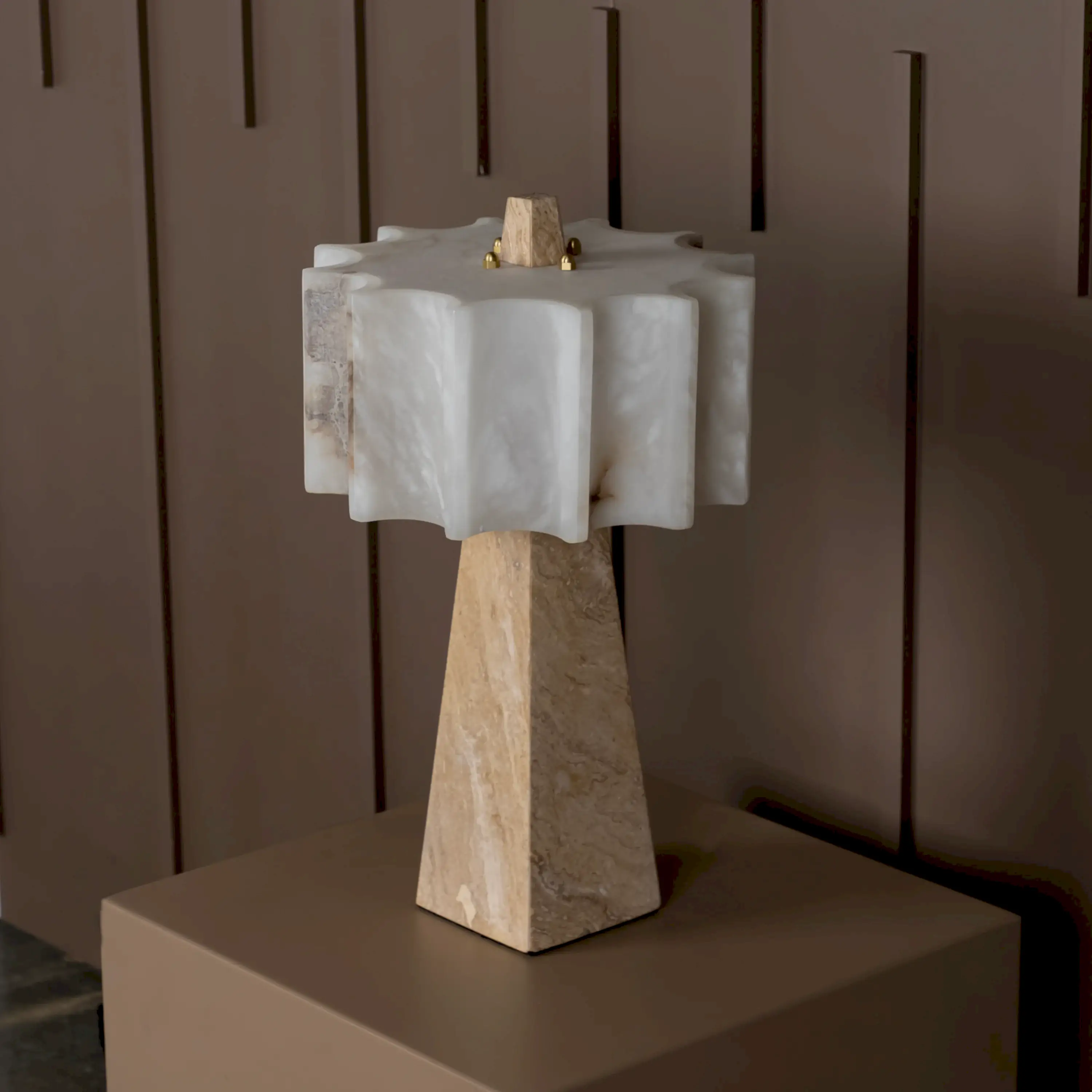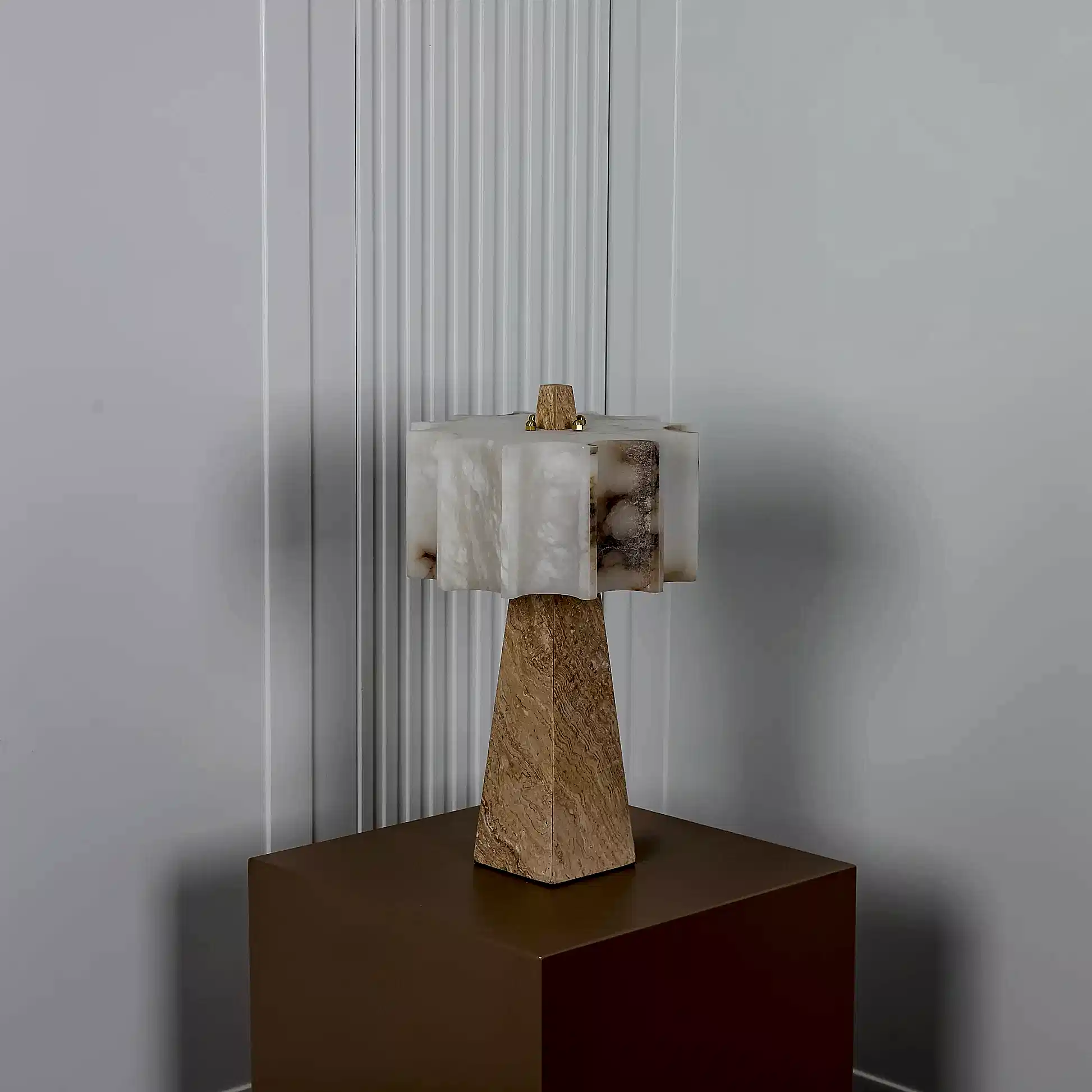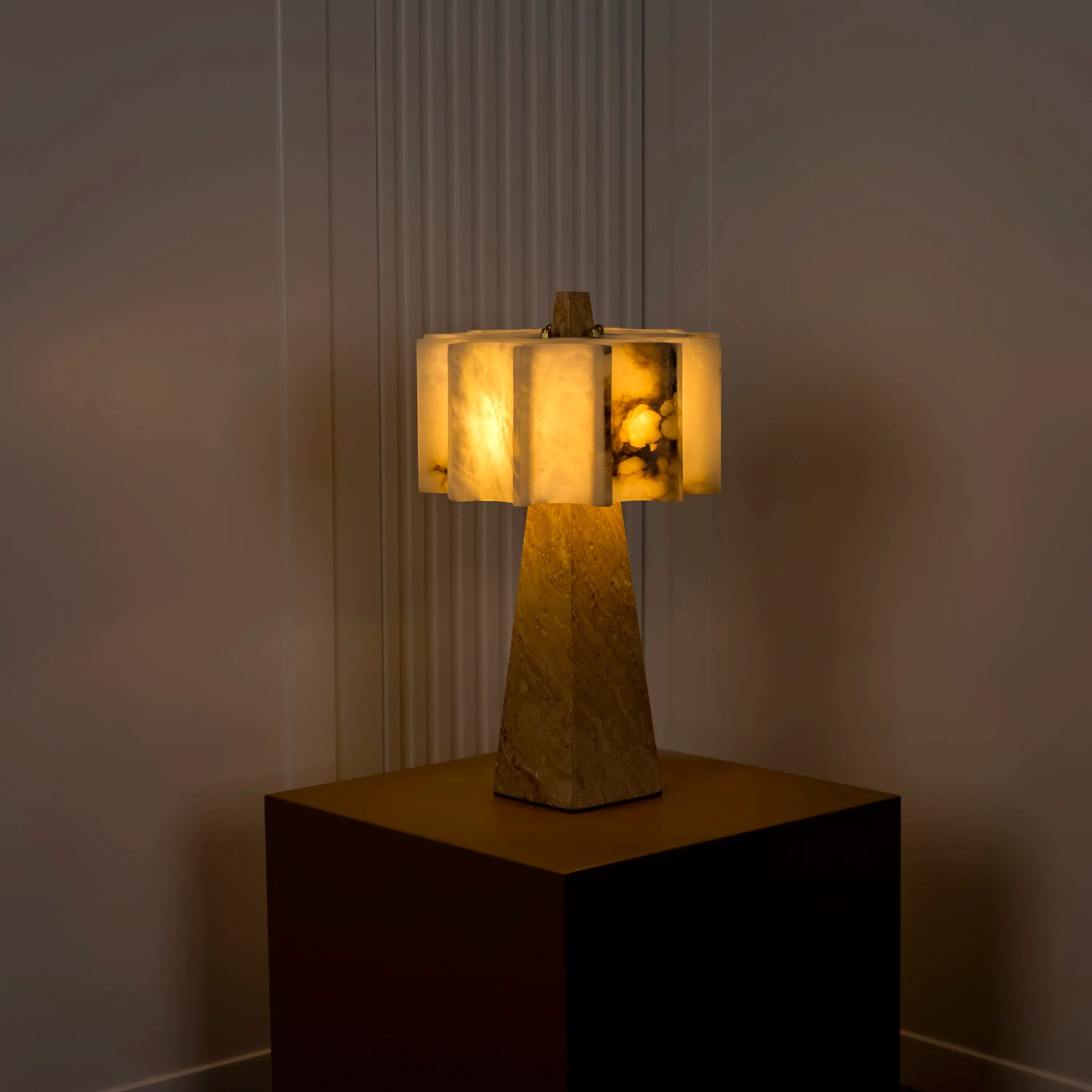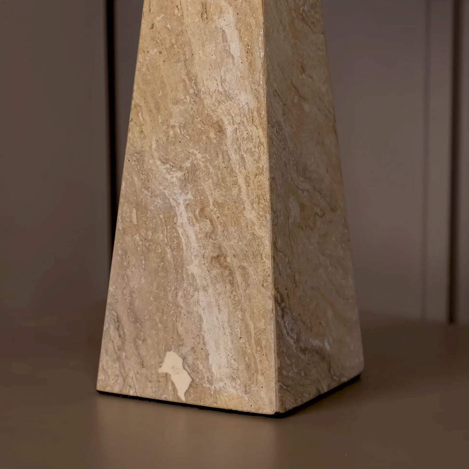 G9 ampul ile çalışan yapısı, masa veya raf üstlerinde dengeli bir ışık sunar. Traverten taşın içinden süzülen aydınlatma, özellikle loş alanlarda huzurlu bir ambiyans oluşturur. Yalın formu sayesinde hem klasik hem de çağdaş dekorasyonlara kolayca uyum sağlar.