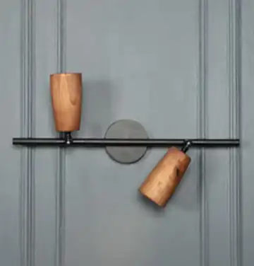 Angel Aplik, siyah metal ve jatoba ahşabın modern kontrastını sunar. İkili formu, dengeli ışık sağlar.