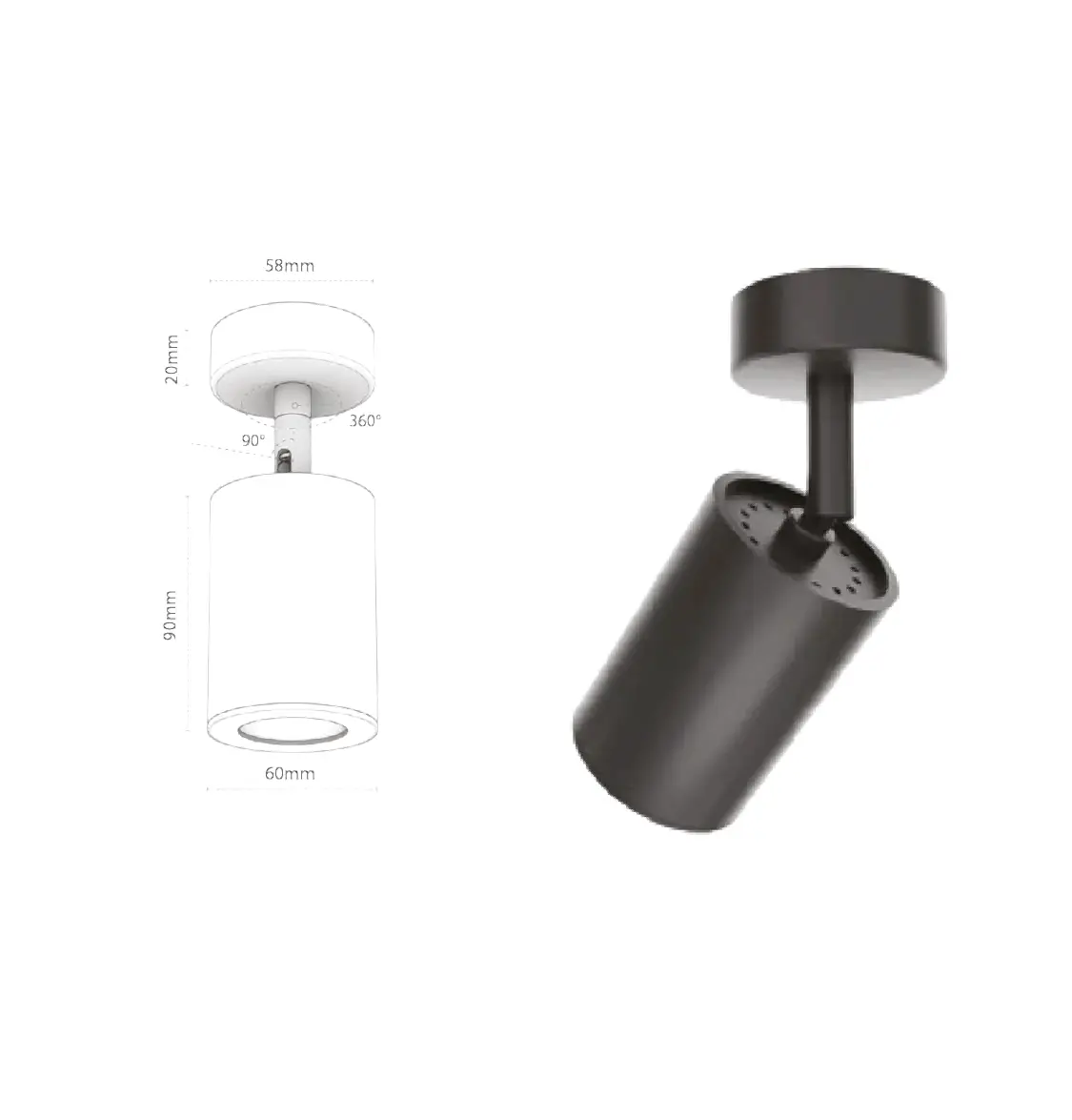 Bella Siyah Düz Spot, minimalist ve modern formuyla tavan aydınlatmalarına sade bir şıklık kazandırıyor. Silindirik gövde yapısı ve siyah rengiyle hem ev hem ticari alanlarda zarif bir görünüm sunar. 360° dönebilme ve 90° açı ayarı sayesinde aydınlatma yönü kolayca değiştirilebilir. GU10 uyumlu yapısı, LED ampullerle enerji verimliliği sağlar.