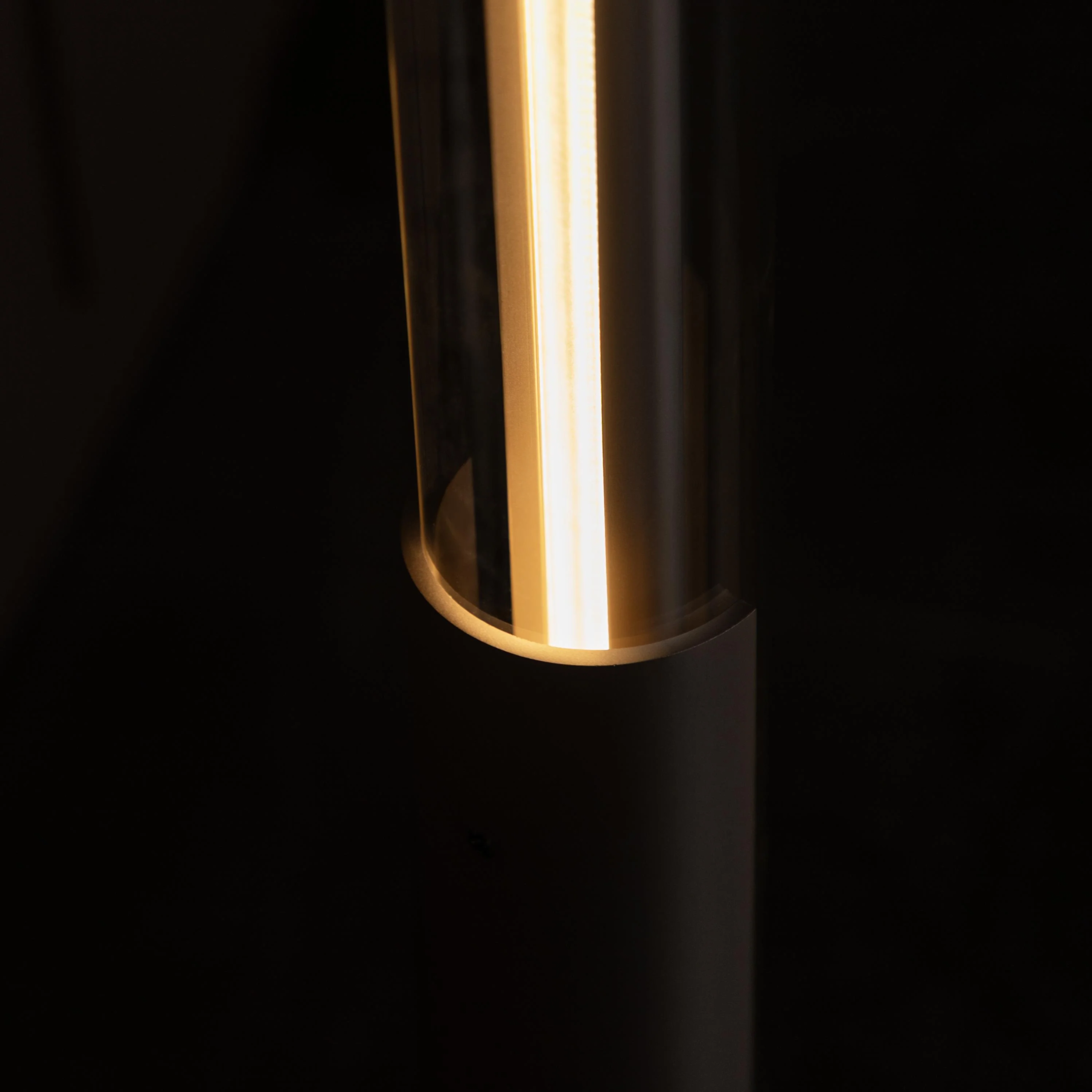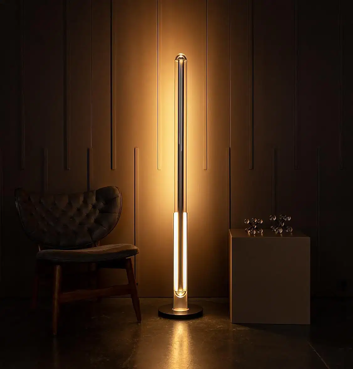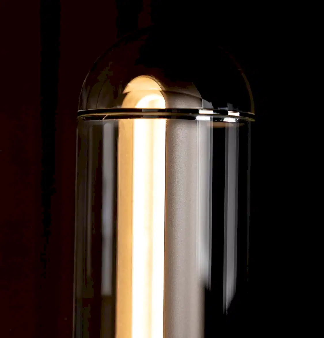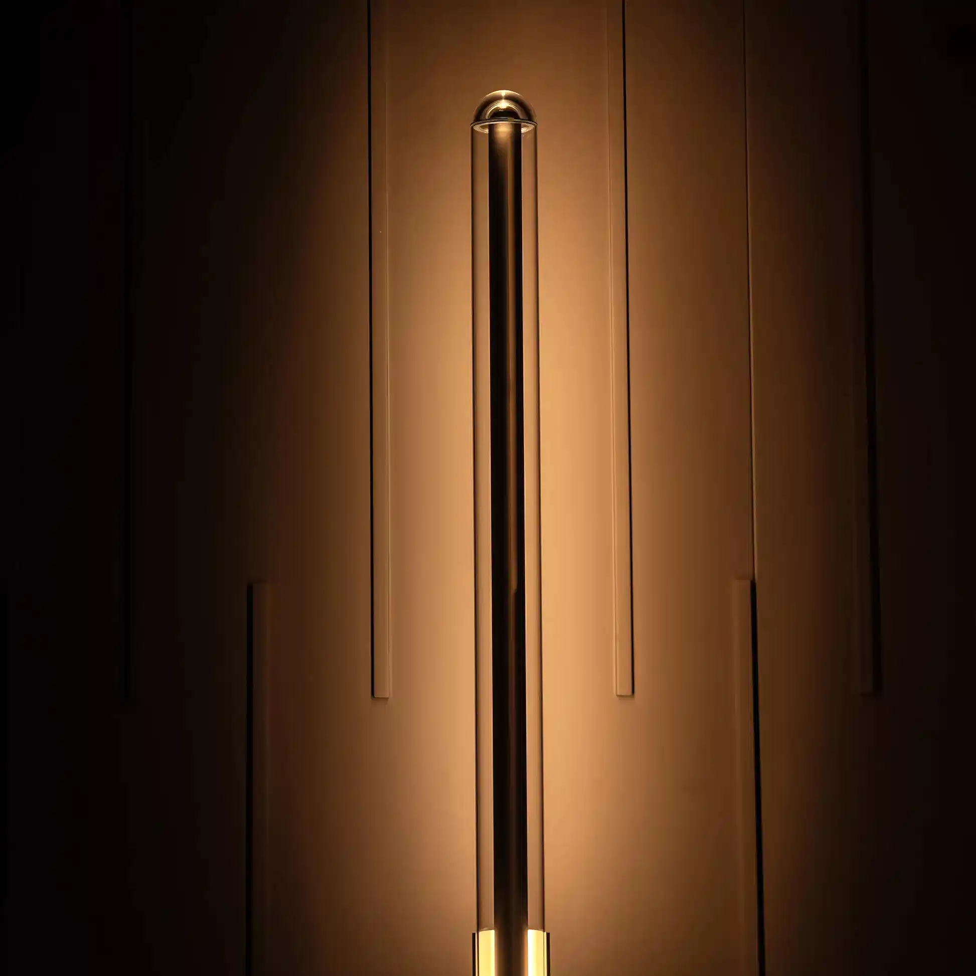 Bermuda Lambader, bej metal detayları ve zarif şeffaf cam tasarımıyla modern iç mekanlara sakin ama şık bir dokunuş getiriyor. İnce ve uzun formu, odanın köşesinde bile dikkat çekici bir varlık sergilerken, çağdaş dekorasyon stiline zarif bir ışıltı katıyor.