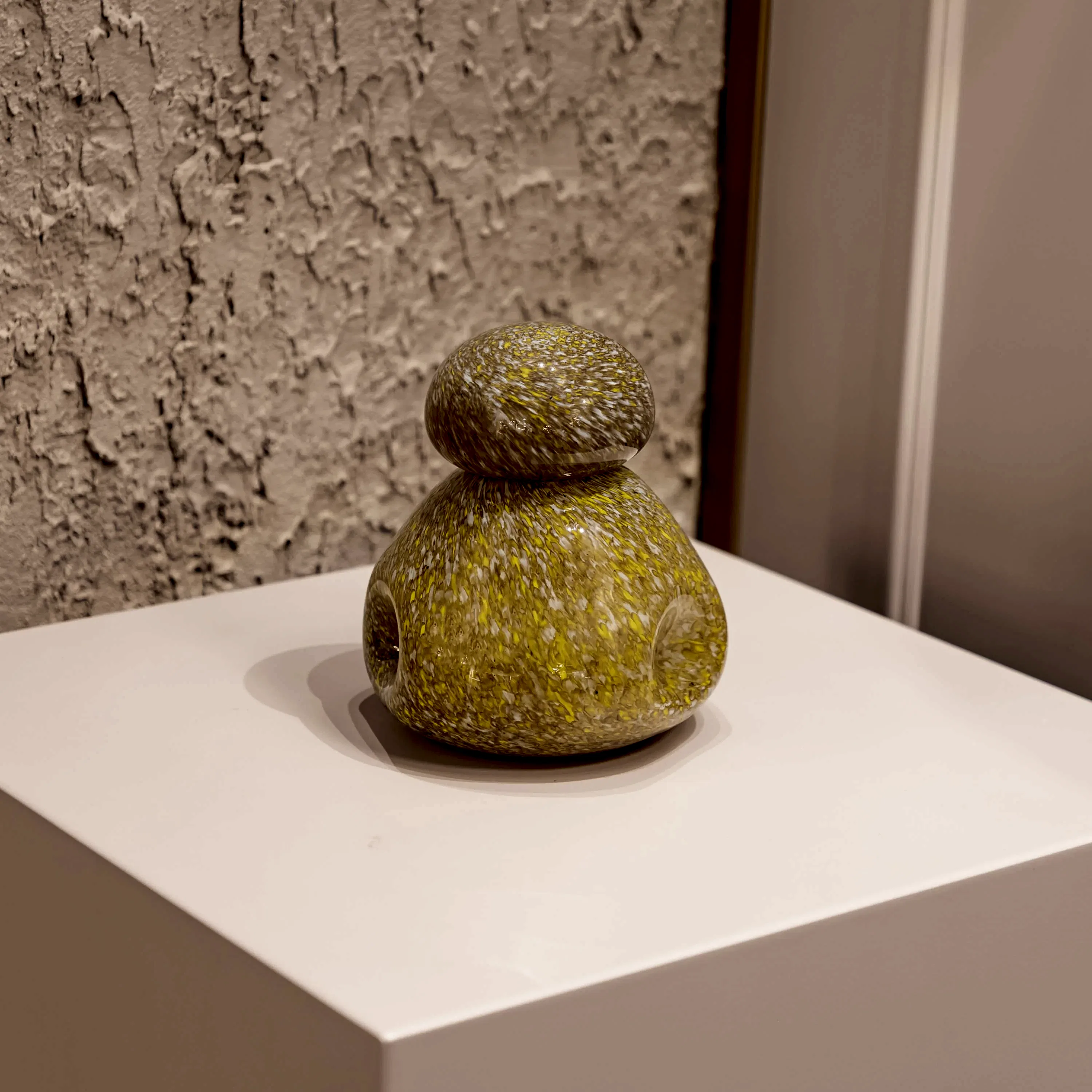 Bologna Çimen Şekerlik, el işçiliği camın doğal ışıltısını organik bir form anlayışıyla bir araya getirerek mekâna sıcak ve neşeli bir dokunuş katar. Çimen tonlarını andıran sarı–yeşil renk geçişleri, yüzeydeki lekeli dokuyla birleşerek her bir parçayı benzersiz kılar. Yumuşak oval hatlara sahip gövdesi, ışıkla temas ettiğinde parlayan doğal bir derinlik oluşturur.