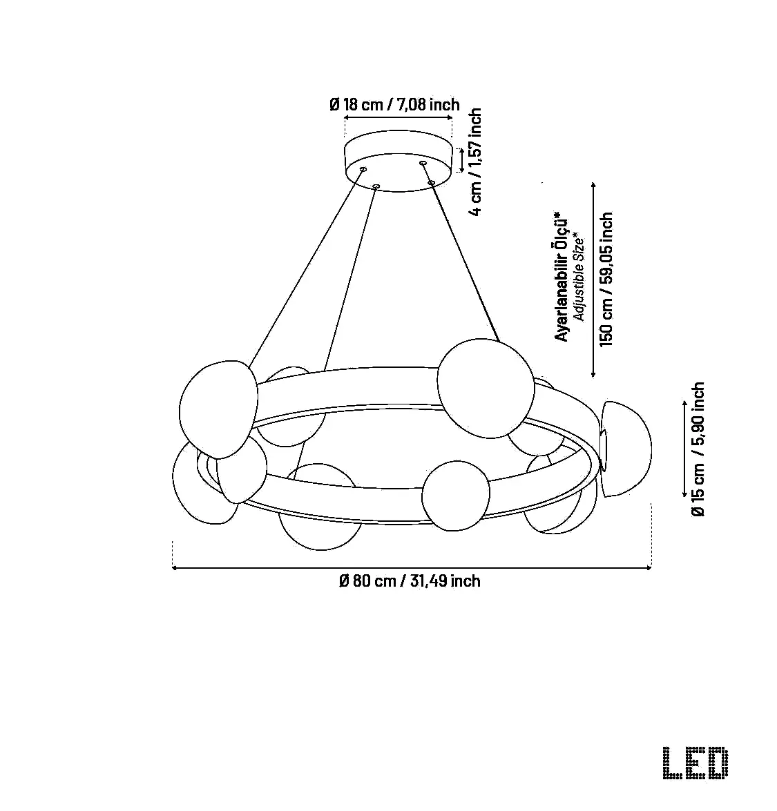 Tüm elektrik bağlantıları yapılmış şekilde, montaja hazır olarak teslim edilen bu tasarım; salonlarda, yemek alanlarında veya geniş ofislerde estetik bir bütünlük yaratmak için ideal bir tercihtir.