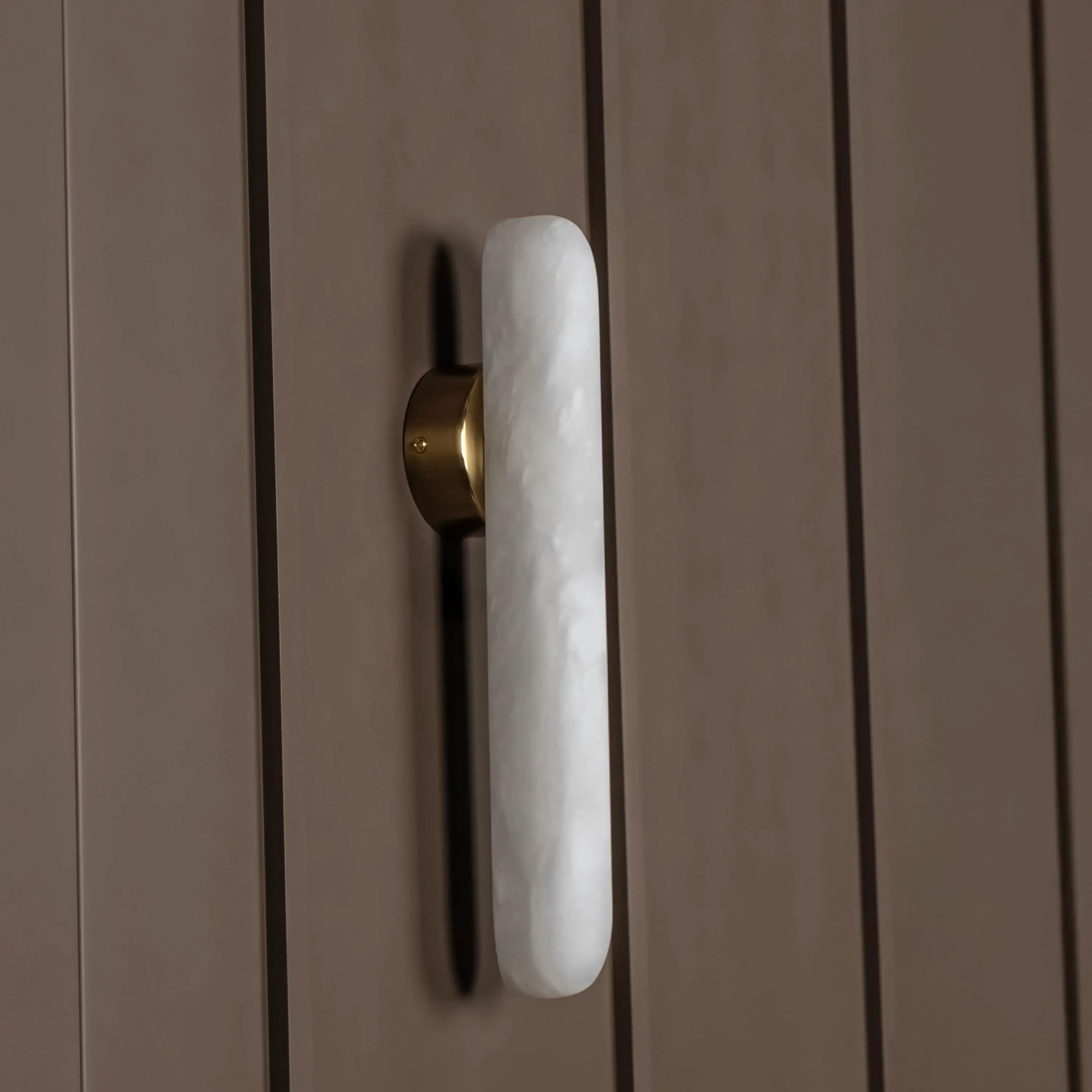 Iguazu Aplik, doğal beyaz mermer yüzeyiyle sadeliğin iç mimarideki gücünü yansıtır. İnce formu sayesinde dar duvar yüzeylerinde bile estetik bir etki yaratır.