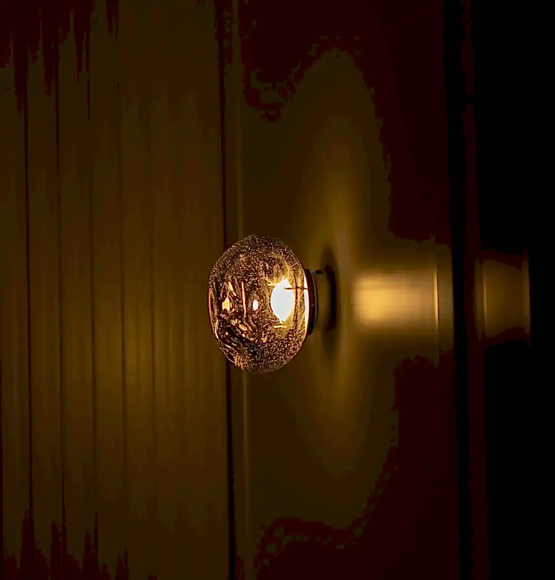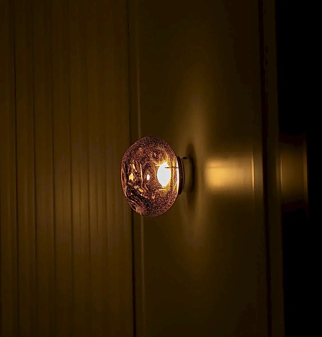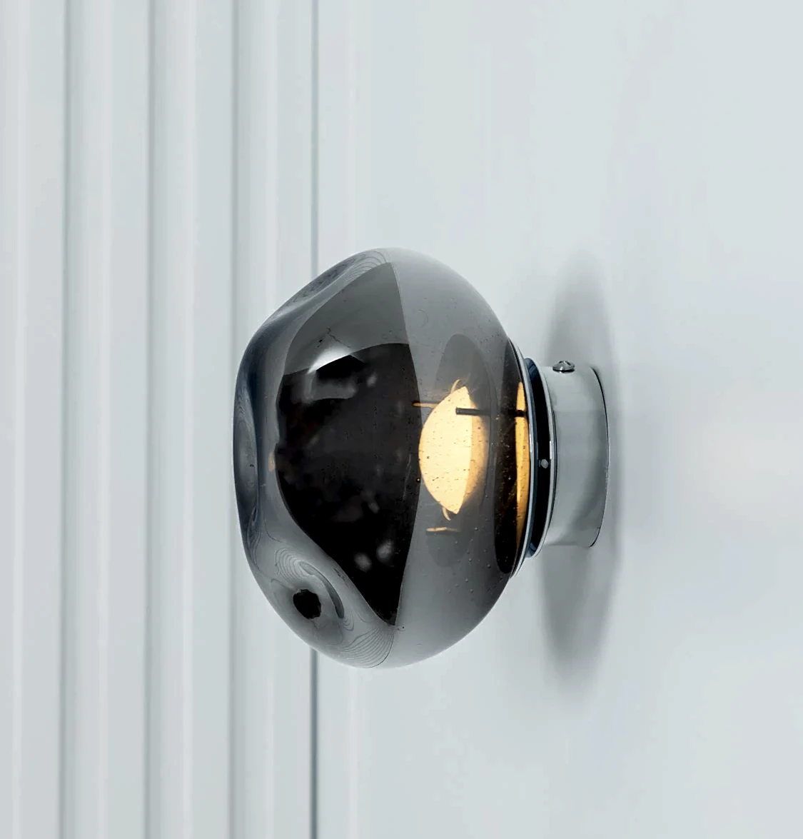 Odense Krom Aplik, kabarcıklı cam detayı ve krom metal gövdesiyle sofistike bir etki yaratır. Dairesel formu ışığı tüm yöne yumuşakça yayar.