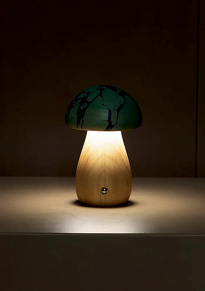 Shaggy Mavi Battal Ebru Ahşap Mantar Masa Lambası, Akça ağaç gövdesi ve zengin başlık renk seçenekleriyle dikkat çeken Shaggy, şarjlı ve dokunmatik renk değişimi özelliği ile kullanım kolaylığı sunar. Üç farklı aydınlatma rengi (gün ışığı, ılık beyaz ve beyaz) ve dimmer fonksiyonu ile aydınlatma seviyesini istediğiniz gibi ayarlayabilirsiniz. Farklı renk seçenekleriyle her mekâna uyum sağlar.