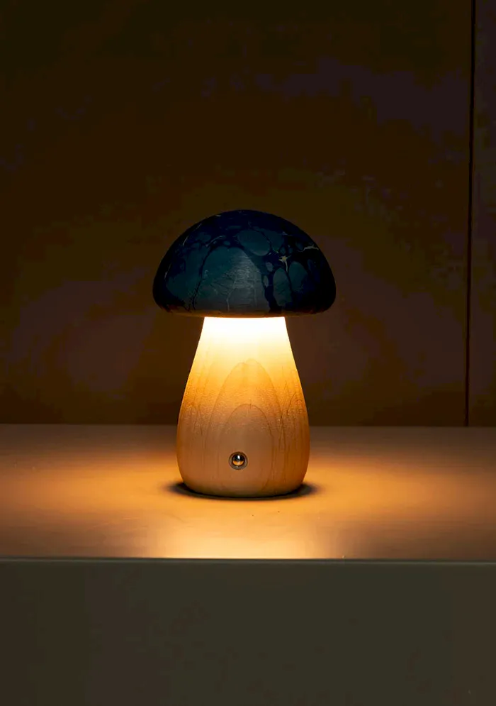 Shaggy Mavi Klasik Ebru Ahşap Mantar Masa Lambası, Akça ağaç gövdesi ve zengin başlık renk seçenekleriyle dikkat çeken Shaggy, şarjlı ve dokunmatik renk değişimi özelliği ile kullanım kolaylığı sunar. Üç farklı aydınlatma rengi (gün ışığı, ılık beyaz ve beyaz) ve dimmer fonksiyonu ile aydınlatma seviyesini istediğiniz gibi ayarlayabilirsiniz. Farklı renk seçenekleriyle her mekâna uyum sağlar.