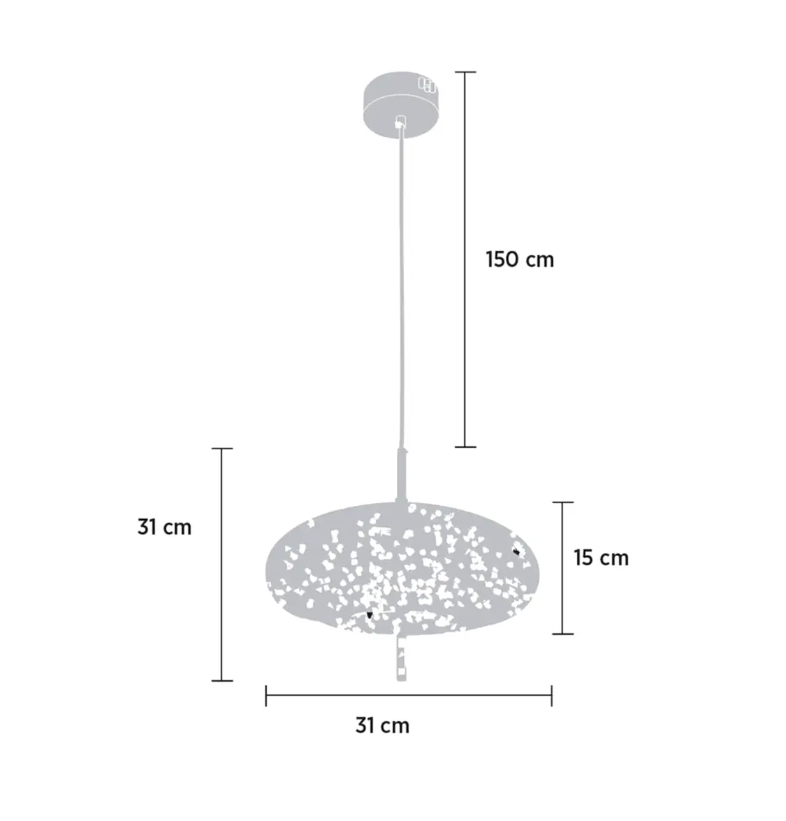 Tüm elektrik bağlantıları yapılmış olarak, montaja hazır şekilde sunulan bu avize; yalınlığı estetikle birleştiren güçlü bir tercihtir.
